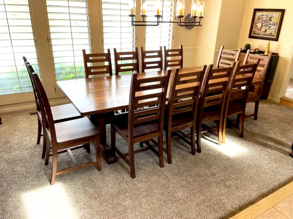 “We have known Alex for many years and what impresses me about Alex is his ability to understand the importance of craftsmanship and building something that stunningly beautiful timeless. We gather around our hand-made Walnut Dining Table and matching chairs and make memories together. His talent is known by all who come to our home. We plan on passing down this piece from generation to generation. His professionalism, attention to detail, and willingness to help our vision become reality is now our gathering place for family and friends.”