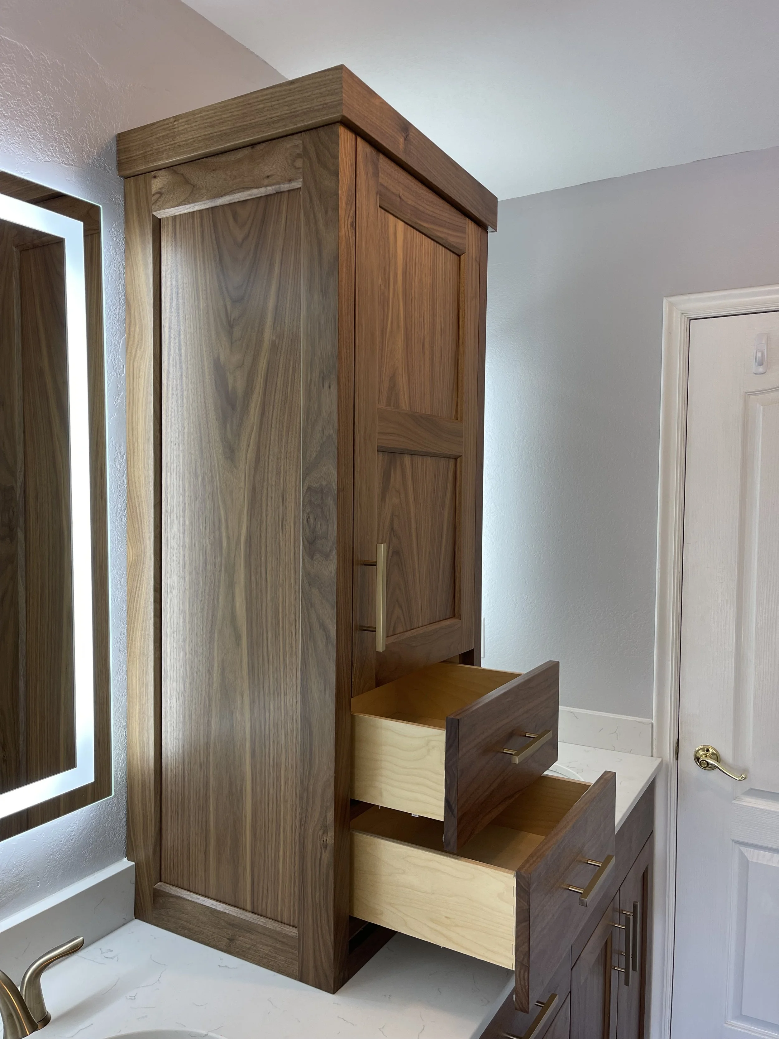 Your bathroom vanity should be as functional as it is beautiful. We build custom vanities tailored to your space and style—smart storage, perfect proportions, and finishes that last. From modern floating designs to classic cabinetry, each piece is precision-crafted to elevate your daily routine and withstand years of use.